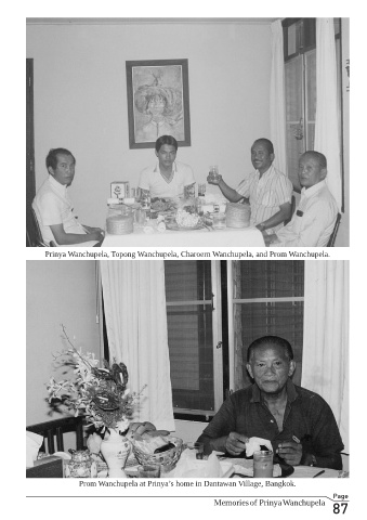 Prinya Wanchupela, Topong Wanchupela, Charoern Wanchupela, and Prom Wanchupela. Prom Wanchupela at Prinya’s home in Dantawan Village, Bangkok. Page Memories of Prinya Wanchupela 87