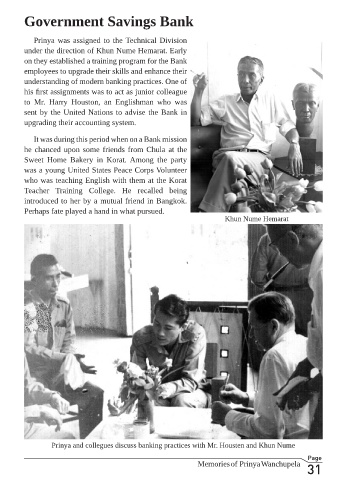 Prinya and collegues discuss banking practices with Mr. Housten and Khun Nume
