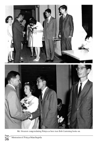 Mr. Houston congratulating Prinya as best man Bob Cumming looks on. Page 36 Memories of Prinya Wanchupela