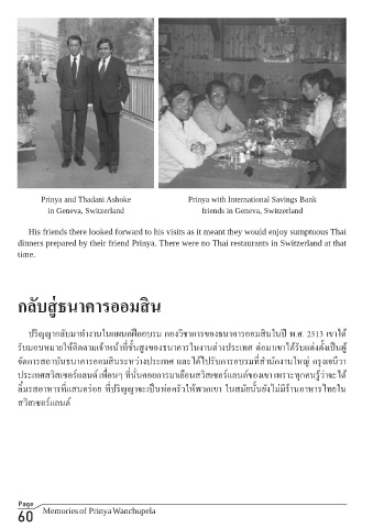 dinners prepared by their friend Prinya. There were no Thai restaurants in Switzerland at that