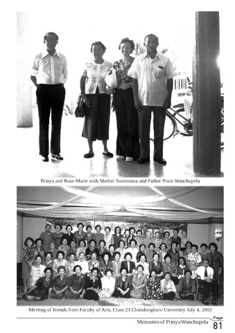 Prinya and Rose Marie with Mother Sommaioa and Father Prom Wanchupela Meeting of friends from Faculty of Arts, Class 21 Chulalongkorn University July 4, 2003 Page Memories of Prinya Wanchupela 81